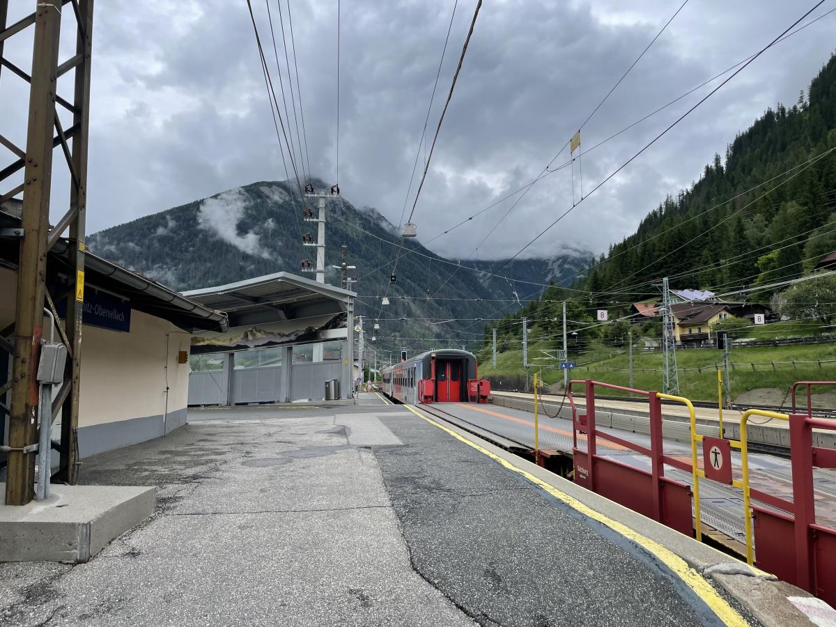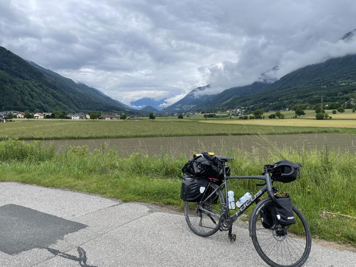 Die achte Etappe startete tatsächlich ohne Regen aber auch mit nur 14°C. Nach 14 km gab es den ersten Anstieg des Tages, hinauf zur Autoschleuse Tauernbahn. Die Bahn verbindet die beiden Orte Böckstein und Mallnitz. Hier gibt es keine Straße oder sonstige Verbindung. Einzig die Bahn bringt alle Reisenden (auch mit Auto) ein mal pro Stunde von einem Ort zu anderen. In Mallnitz angekommen (bei nur noch 9°C), ging es rasant bergab und die Bremsen wurden wieder ordentlich gefordert.