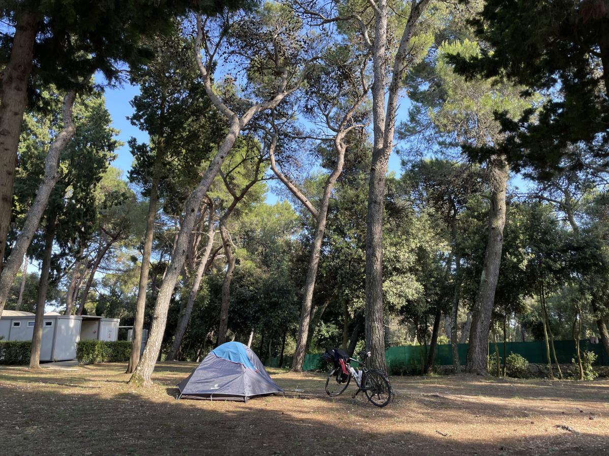 Der Campingplatz, den ich zunächst als Etappenziel ausgesucht hatte, entpuppte sich als Hippie-Zeltlager, was mir nicht so zusagte. Also ging es noch 20 km Richtung Süden nach Prematura. Dort fand ich einen Campingplatz direkt am Wasser. Damit ist der südlichste Punkt der Tour erreicht.